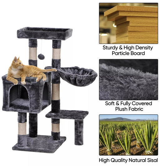 36" Cat Tree Cat Tower Scratching Posts Cat Condo W/Hammock for Indoor Cats Gray