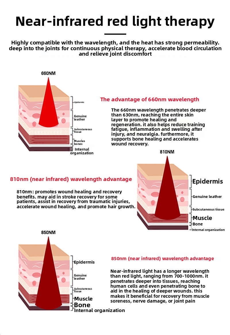 Red Light Therapy: Uses far infrared technology for pain relief and healing.